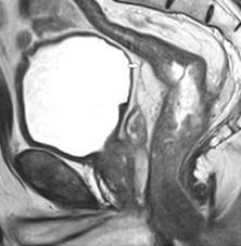 Сагиттальная проекция является основной для оценки протяженности опухоли, ее положения относительно зубчатой линии (уровня верхнего края m. puborectalis) и переходной складки брюшины.