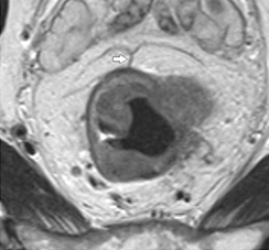 Высокоразрешающие Т2-ВИ срезы в корональной плоскости (по длинной оси анального канала) детально визуализируют распространенность опухолевого процесса и обеспечивают информацией, необходимой для выбора хирургического подхода.