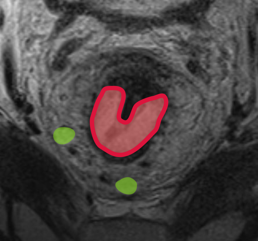 Специализированная система стадирования для низких опухолей прямой кишки (≤5 см от анального края) учитывает анатомические особенности этой зоны и повышает точность планирования оперативного лечения [[1]; 26; 28]. Данная система помогает определить показания к межсфинктерной резекции или брюшнопромежностной экстерпации. МРТ-оценку этой зоны оптимально выполнять в корональной проекции по длинной оси анального канала.